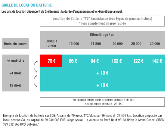 - Une batterie en location, afin de garantir un prix d’achat (hors batterie) proche de celui d’un véhicule thermique de la même catégorie